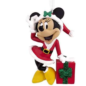 Hallmark Disney Mickey Minnie Mouse and Present Christmas Ornament (Minnie Mouse in Santa Suit and Present)