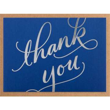 Expressing gratitude has never been more stylish with the Hallmark Thank You Notes. This boxed set features 40 exquisite navy blue cards, each embossed with elegant silver foil script that transforms your heartfelt messages into cherished keepsakes. Designed for those who appreciate simplicity and sophistication, these cards are perfect for any occasion—from weddings and engagements to professional acknowledgments. At 5" x 4", these cards are the ideal size for a personal note, yet compact...