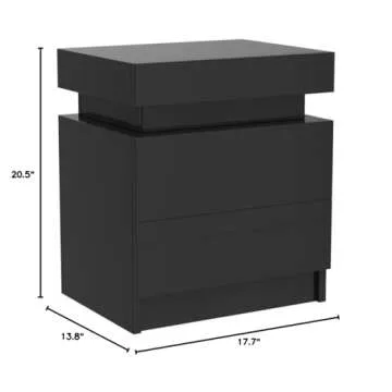 HALLOLURE LED Nightstand Modern Black Nightstand with Led Light 20.5" Tall Bedside Table LED Night Stand with High Gloss Drawers for Bedroom Low Profile Platform Bed