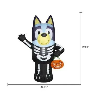 Show moreTransform your Halloween festivities with the Halloween Bluey Skeleton Inflatable 5ft – a delightful and captivating addition to your seasonal décor. Designed to bring joy and a touch of whimsy, this inflatable features a quirky Bluey skeleton that is sure to become a favorite among both kids and adults. Measuring an impressive 5 feet tall, it instantly elevates your outdoor or indoor decoration game. Simply plug it in, stake it down, and in mere seconds, watch as this enchanting figure self-inflates into a charming display. Its vibrant colors and playful design perfectly embody the spirit of Halloween, making it an eye-catching centerpiece for any celebration or event.