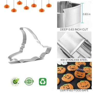 Show more Get ready to bake up a spook-tacular storm with our Halloween Cookie Cutters Set! This set includes 10 expertly crafted stainless steel models, including beloved Halloween shapes such as ghosts, bats, pumpkins, witch hats, cats, skulls, spiders, spider webs, coffins, and tombstones. Each cutter is designed to inspire creativity and fun in the kitchen, making it easy to whip up festive treats that are perfect for all your Halloween festivities!