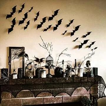 Halloween Decoration 3D Bats Stickers,96PCS 4 Sizes Extra Large Black Bats Window Stickers Decal Wall Stickers Halloween Party Decoration Party Supplies