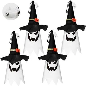 Halloween Decorations Glowing Ghost Witch Hat String Lights - Indoor/Outdoor Hanging Decor for Home, Garden & Tree (4Pcs)