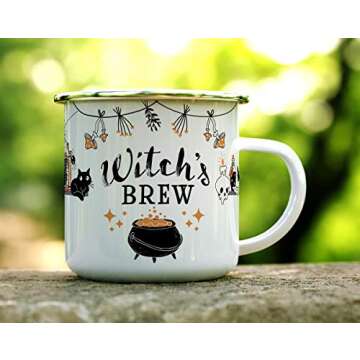 Halloween Fall Autumn Season Enamel Campfire Mug, Witch's Brew Outdoor Camping Coffee Cup, Gift for Friend, Mom, Sister, Coworker (12oz)