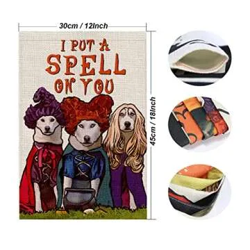 Halloween Garden Flag for Dog Lovers - I Put A Spell On You, 12x18 Inch Double Sided Vertical Halloween Decoration Outdoor, Rustic Farmhouse Decor for Seasonal Holiday Yard