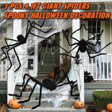 Halloween Giant Spider Decorations Outdoor: 3 PCS Halloween Spider Decorations Outside - 50'' Large Spiders Realistic Hairy Halloween Decor - Scary Big Spiders Halloween Decorations for Indoor Yard