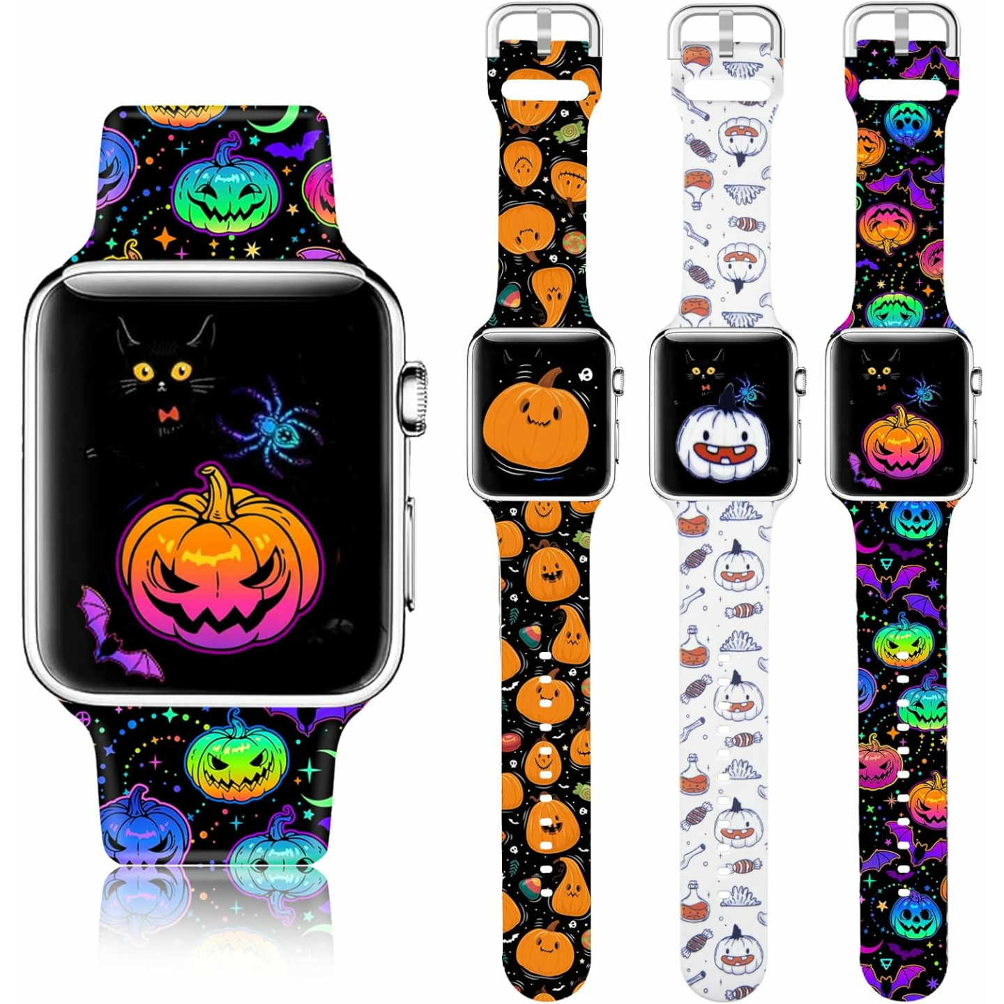 Show moreTransform your Apple Watch with these Halloween Holiday Watch Bands! This 3-pack of watch bands is compatible with a range of Apple Watch models, including Series 8, 7, 6, 5, 4, 3, 2, 1, and SE. Designed for both men and women, these adjustable, soft silicone replacement smartwatch wristbands offer a perfect blend of comfort and style. The pack features unique and festive designs that are perfect for adding a touch of Halloween spirit to your everyday style.