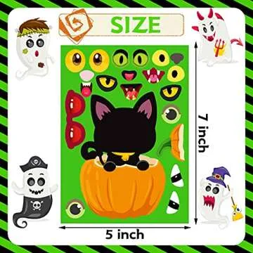 Show more Unleash your child's creativity this Halloween with our Halloween Make a Face Stickers for Kids! This delightful set includes 32 PCS of vibrant, fun, and engaging Halloween stickers that allow kids to design spooky faces on classic Halloween characters such as zombies, vampires, witches, mummies, ghosts, jack-o-lanterns, pumpkins, cats, and skeletons. Each set comes complete with 8 unique styles, giving your child the freedom to mix and match and create their own festive characters. The big size of 7 x 5 inches per sheet makes these stickers easy to work with and perfect for little hands. Whether for crafts or games, these stickers will ignite imagination and enhance the Halloween spirit!
