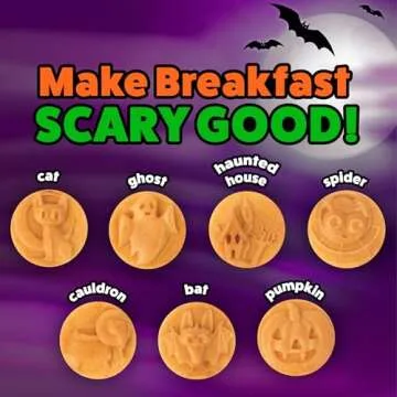 Show moreGet ready to transform your breakfast into a whimsical celebration with the Halloween Mini Waffle Maker Iron. This delightful kitchen gadget allows you to create 7 festive and spooky designs, including a Pumpkin, Ghost, Haunted House, Spider, Bat, Cat, and Cauldron. Designed with kids in mind, this waffle maker guarantees endless fun as they discover these charming shapes, making morning meals an adventure during the Halloween season. Prepare to watch their eyes light up every time they see these delightful creations!
