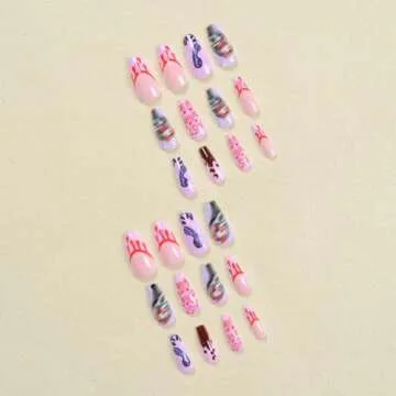 Halloween Press on Nails Medium Coffin Fake Nails Blood False Nails with Design Cute Ghost Glue on Nails Purple Coffin Full Cover Glossy Acrylic Stick on Nails for Women DIY Holiday Nail Decor 24Pcs