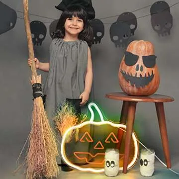 Show moreBrighten up your Halloween festivities with the stunning Halloween Pumpkin LED Neon Sign. Measuring 13.8x12 inches, this beautiful handmade neon artwork combines vibrant orange and green tones that perfectly capture the essence of Halloween. Not only does it serve as an attractive decorative item, but it is also a versatile lighting solution that can enhance any room’s ambiance. Whether you're hosting a Halloween party, decorating a bar, or transforming your space into a cozy fall retreat, this LED sign is the perfect companion to spark festive joy and create a lively atmosphere.