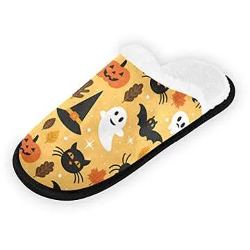 Halloween Pumpkin Spa Slippers Black Cat Ghost Skull House Slippers Memory Foam Slippers Indoor Outdoor Non-Slip Home Shoes M for Men Woman