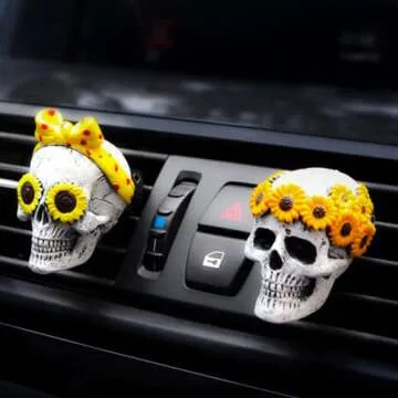 Halloween Skull Car Accessories For Women, Teens, Sunflower Skull Air Freshener Car, Car Skull Decor, Hippie Car Accessories, Girls Auto Vent Halloween Gifts Decorations, Christmas Gifts