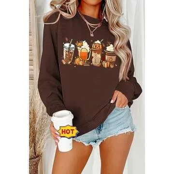 Halloween Town Sweatshirt Women Pumpkin Coffee Graphic Sweatshirts Halloween Sweaters For Women Women Pumpkin Coffee Graphic Sweatshirts Sports Sweatshirts Retro Crewneck Pumpkin Shirt(CO,L)
