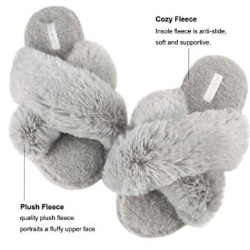 HALLUCI Women's Cross Band Soft Plush Fleece House Indoor or Outdoor Slippers (X-Large, Grey)
