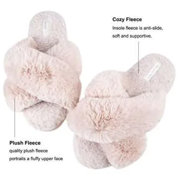 HALLUCI Women's Cross Band Soft Plush Fleece House Indoor or Outdoor Slippers (X-Large, Pink)