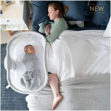 The extra-close, safe sleep option this bassinet offers is unmatched. Designed to hover over your bed while swiveling for easy access, it provides the closest, safest alternative to traditional co-sleeping, allowing parents to stay connected with their baby throughout the night. With its easy lowering wall, parents can quickly check on their little ones without straining their backs or making awkward movements, all while benefiting from the full mesh design that ensures optimal airflow and visibility.