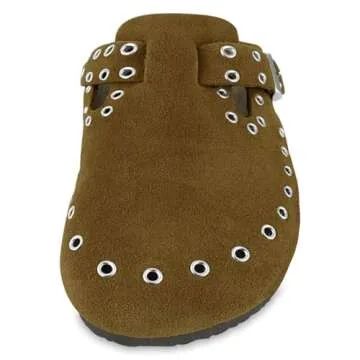 HALOFIVE Women's Mules & Clogs, Women's Suede Clogs Leather Mules Cork Footbed Rivet Potato Shoes with Arch Support Men's Comfort Slip-On Clogs(Brwon, 8-8.5)