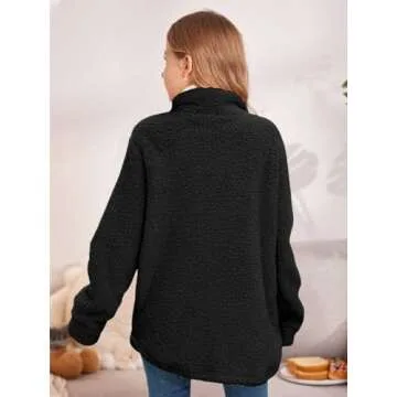 Haloumoning Girls Fuzzy Fleece Jacket Casual Button Down Sherpa Overcoat Faux Fur Jackets Outwear 4-15 Years