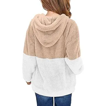 Show moreWrap your young ones in delightful warmth with the Haloumoning Girls Fuzzy Fleece Pullover Hoodies Sweatshirt. Perfectly designed for girls aged 10-11 years, this stylish and functional hoodie is made from 100% Polyester, ensuring a soft, plush feel against the skin that makes it impossible not to adore. Its incredibly cozy sherpa fleece locks in warmth while allowing for supreme breathability, making it an essential addition to any winter wardrobe. This pullover isn’t just about comfort; it’s a trendsetter's dream, with a chic color block design that keeps your girl looking fashionable whether at a playdate or on a family outing.