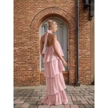 Unlike many formal gowns that compromise comfort for style, the Halter Chiffon Prom Dress 2025 offers both. Many dresses on the market lack the customization options and range of sizes that this gown provides. While competitors may feature simple designs, our tiered ruffle detailing ensures you stand out with elegance and sophistication. Plus, the backless feature adds a modern twist that is often absent in traditional ball gowns, making it a unique choice for fashion-forward individuals.