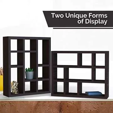 Halter Floating Shelves Wall Mounted 3 Tier Cube Compartments for Decorative Display, Espresso Wood