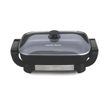 Show moreIntroducing the Hamilton Beach Electric Skillet (Model 38531), a game changer in your kitchen that combines functionality with convenience. Designed for busy lives, this electric skillet boasts a generous 180 sq. in. nonstick cooking surface that allows you to whip up delicious one-pan meals with ease. With a unique Durathon ceramic coating, it stands out for its durability, being four times more resilient than traditional nonstick surfaces and completely PTFE and PFOA free. This makes it an excellent choice for health-conscious cooks who prioritize safety without sacrificing performance. Its innovative removable 12" x 15" skillet makes serving at the table a breeze, while the adjustable temperature range of 200° to 400°F gives you complete control for various cooking tasks, from sautéing to simmering.