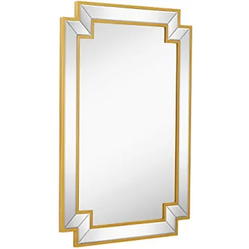 Show more Transform your living space with the **Hamilton Hills 24x36 Inch Gold Corner Cut Frame Beveled Mirror**. This exquisite mirror features an elegant design, perfect for adding a touch of sophistication to any room. The beautifully crafted rich framed gold deco, adorned with intricate gold patterns, enhances its aesthetic appeal. With a total width of 3 inches and a refined 1/8" beveled mirror inlay, this piece serves as not only a functional accessory but also as an elegant focal point in your home.