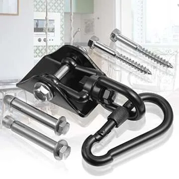 Show more Introducing the ultimate Hammock Hanging Kit, crafted with precision to enhance your relaxation experience! This exceptional product is made from premium quality 304 stainless steel, designed to withstand significant weight and ensure your safety while you unwind in your favorite hammock or swing chair. With a remarkable load capacity of 1200 lbs, you can feel confident knowing this kit can support both kids and adults alike. Easy to install, this kit comes with all the necessary hardware to securely mount it to your concrete ceiling or wooden beams, allowing you to transform any space into a cozy retreat.