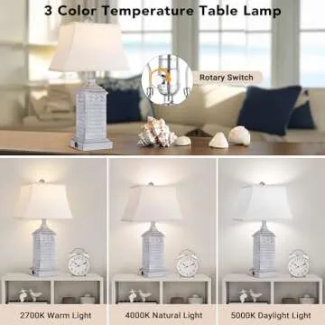 Hamucd Coastal Table Lamps Set of 2, Beach Living Lamps for Bedroom with USB A+C, Antique Grey Modern Resin LED 3-Color Temperature Bedside Nautical Decor, Nightstand Tropical Lamps for End Table.