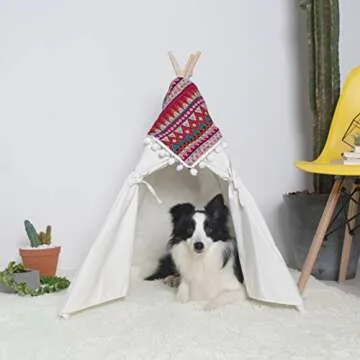HAN-MM Pet Teepee Dog Toy Tent Classical Pure White Canvas Style
