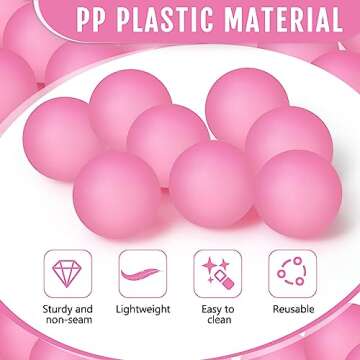 Show moreUnleash hours of fun and creativity with the Hanaive 100 Pack Table Tennis Balls! This bulk set features an astonishing 100 colorful table tennis balls, each measuring 40mm (1.57 inches) in diameter. Crafted from high-quality PP plastic, these lightweight, waterproof balls boast a smooth and reliable design, ensuring they can withstand the rigors of play while remaining easily portable. Ideal for parties, games, and DIY projects, they serve as the perfect solution for any recreational need or decorative purpose.