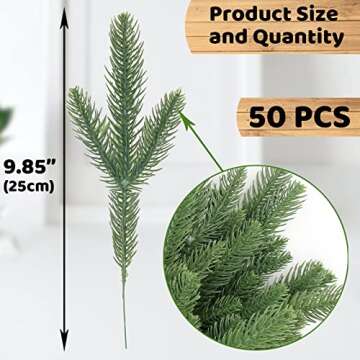 Hananona 50 Pcs Artificial Pine Branches Green Plants Pine Needles DIY Accessories for Garland Wreath Christmas and Home Garden Decor (50, Green)