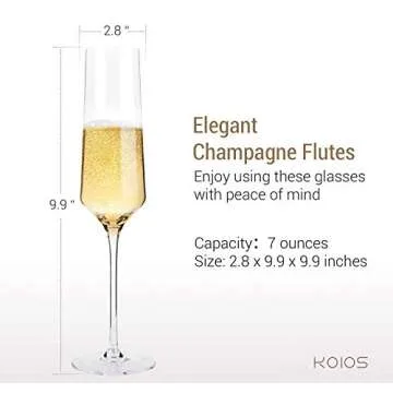 Hand Blown Crystal Champagne Flutes - Bella Vino Elegant Champagne Glasses Made from 100% Premium Crystal Glass, Perfect for Any Occasion,Great Gift, 10", 7 Oz, Set of 2, Clear