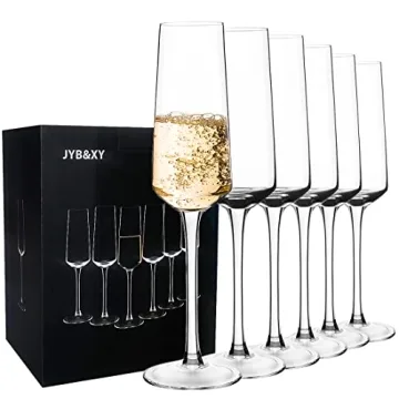 Elegant Hand Blown Crystal Champagne Flutes Set of 6 - 100% Lead Free, Dishwasher Safe