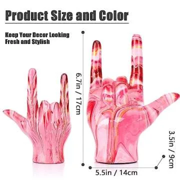 Hand Decor Finger Gesture Statue Pink I Love You Sign Language Desk Statue Modern Art Stand Ring Holder Sculpture Decorative Objects Gifts for Couples Bedroom Shelf Coffee Table Centerpiece Pink