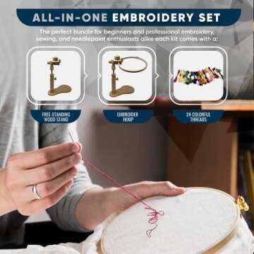 Hand Embroidery Kit with Adjustable Frame and 24 Color Threads for All Skill Levels