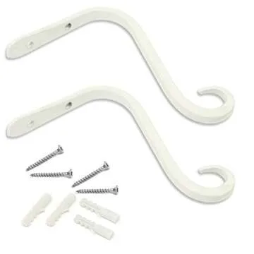 Hand Forged Wall Mounted Hook, 2-Pack, 6 Inch Curved White For Bird Feeders & Houses Planters Lanterns Wind Chimes Hanging Baskets Ornaments String Lights, As Wall Brackets & More!