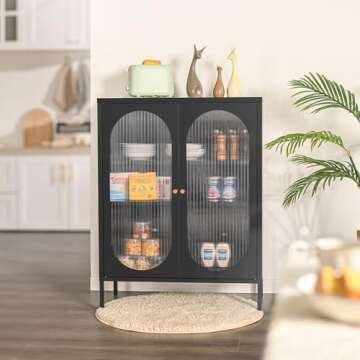 Show moreIntroducing the HAND IN HAND Buffet Sideboard Cabinet—a chic storage solution that effortlessly combines durability and elegance. Constructed from high-quality steel, this accent cabinet offers uncompromising strength and a remarkable load capacity of 66 lbs per shelf. Its versatile design allows it to seamlessly blend into any room, including your living room, dining room, kitchen, or bar area, making it the ultimate home accessory for organization and style.