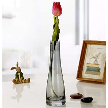 Show moreIntroducing the exquisite Hand-Made Blown Art Bud Glass Vase in a sophisticated grey hue, perfect for adding a touch of elegance to any setting. This decorative glass vase is meticulously crafted from premium, blemish-free crystal clear glass, ensuring each piece stands out with its gleaming finish. With dimensions of 6.5*21*3.5 cm (approximately 2.55*7.87*1.37 inches), this compact yet stunning vase features a thickened base that provides stability, making it ideal for displaying your favorite flowers on any tabletop. The classic design, characterized by smooth and beautiful lines, renders this vase not just a functional piece but also a chic décor element, enhancing both your home and office atmosphere.