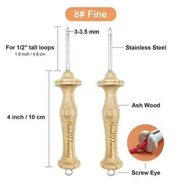 Hand U Journey 8# Fine & 10# Regular Size Beech Wood Handle Punch Needle Rug Hooking Tool Sets-with Oxford Open-Side Design