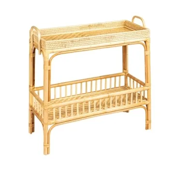 The console table is crafted from high-quality rattan and bamboo.