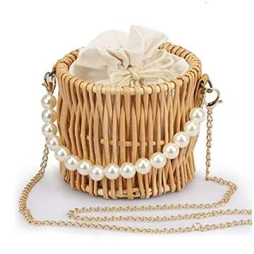 Hand-woven Wicker Handbag Basket Purse Retro Summer Women Straw Tote,Round