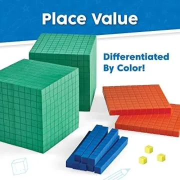 hand2mind Differentiated Plastic Base Ten Blocks Complete Set, Place Value Blocks, Counting Cubes, Base Ten Blocks Classroom Set, Math Blocks Kindergarten, Base 10 Math Manipulatives (Set of 121)