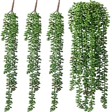 Show moreIntroducing the HANDIC 3pack Artificial Fake String of Pearls Plant – a stunning collection of faux hanging succulents that effortlessly enhances your space with natural beauty! Measuring approximately 27 inches long, each plant boasts five branches of varying lengths, creating a delightful cascade that mimics the allure of real greenery. Crafted with meticulous attention to detail from high-grade plastic, these artificial plants promise durability and unyielding charm without the need for watering or sunlight. Perfect for those busy lifestyles, they allow you to bring the tranquility of nature indoors without any maintenance hassles.