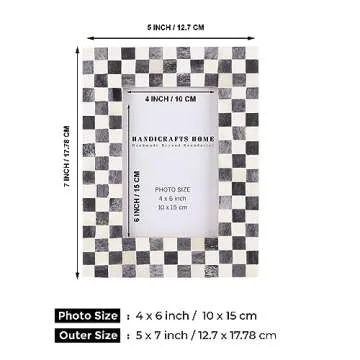 Handicrafts Home Checked Pattern Picture Photo Frame Handmade Naturals Bone Frames For Photo Frames - 4x6 inch Grey & White