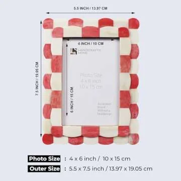 Handicrafts Home Photo Picture Frame - 4" x 6" Handmade Gift Photo Frames - Red & white