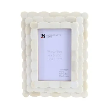 Show moreTransform your cherished memories into stunning displays with the Handicrafts Home Picture Frame, a beautiful blend of artistic craftsmanship and functional elegance. This exquisite photo frame is designed not merely to hold pictures but to enhance the aesthetic of any setting with its eye-catching scalloped patterns and soft white tones. Each frame is a unique piece, showcasing the distinct workmanship of talented artisans who have mastered the age-old technique of bone inlay. This frame is more than just a product; it is a work of art that tells a story through its intricate designs, effortlessly becoming a centerpiece in any room.