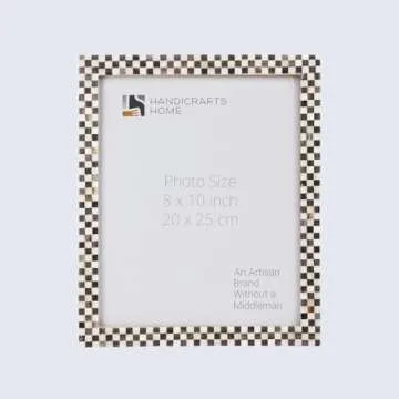 Show moreIntroducing our unique and elegant Chevron Pattern Inspired Grey White Photo Frames, meticulously crafted by skilled artisans using premium bone inlay and durable Pine MDF. These stunning frames not only provide robust support for your cherished photos but also elevate your home decor to new heights. Each frame flaunts a hand-buffed polish, bringing out the intricate patterns and ensuring that each piece is a one-of-a-kind masterpiece. Whether it's a family portrait, a vacation snapshot, or heartfelt memories with friends, these frames are designed to showcase them beautifully.