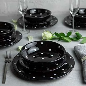 Handmade Black and White Polka Dot Ceramic 12 piece Dinnerware Set | Pottery Tableware Service for 4 | Dinner Plates | Side Plates | Bowls | Housewarming Gift by City to Cottage®